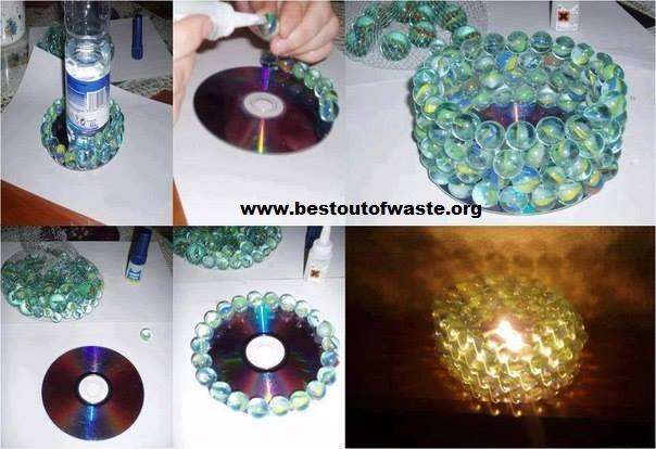 This is one of the best diwali decorations Idea to implement on this Diwali 2013. Stick globule on waste compact disk (cd). Make a circle over and over so finally get a craft which is looked like a pen-stand. Then after put a diwali lamp between the circle and let it twinkle.