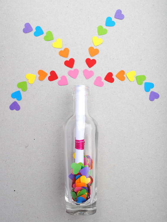 3 : Rounded the message-paper and put it in bottle with colorful heart shape made from colorful chart paper.